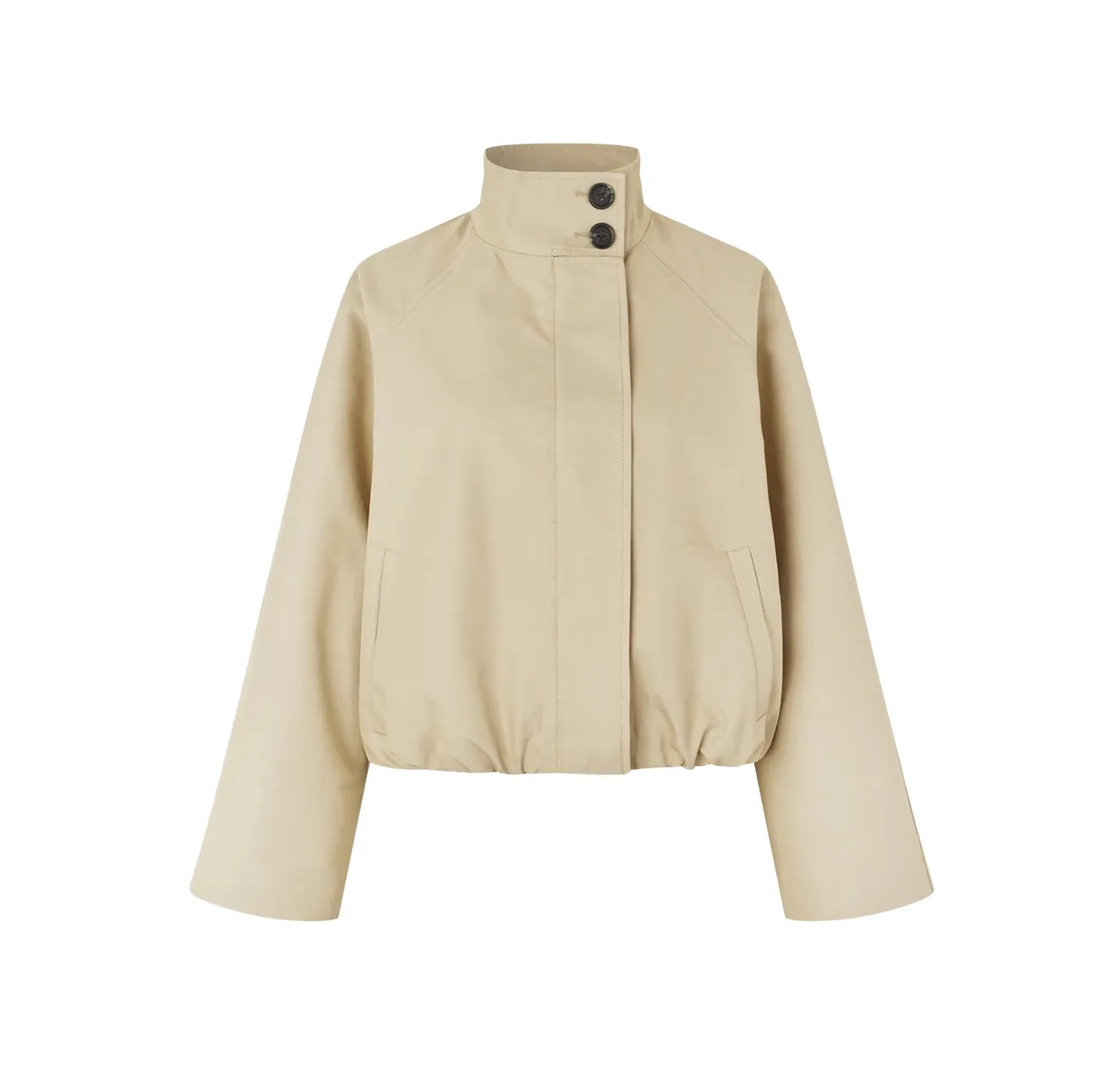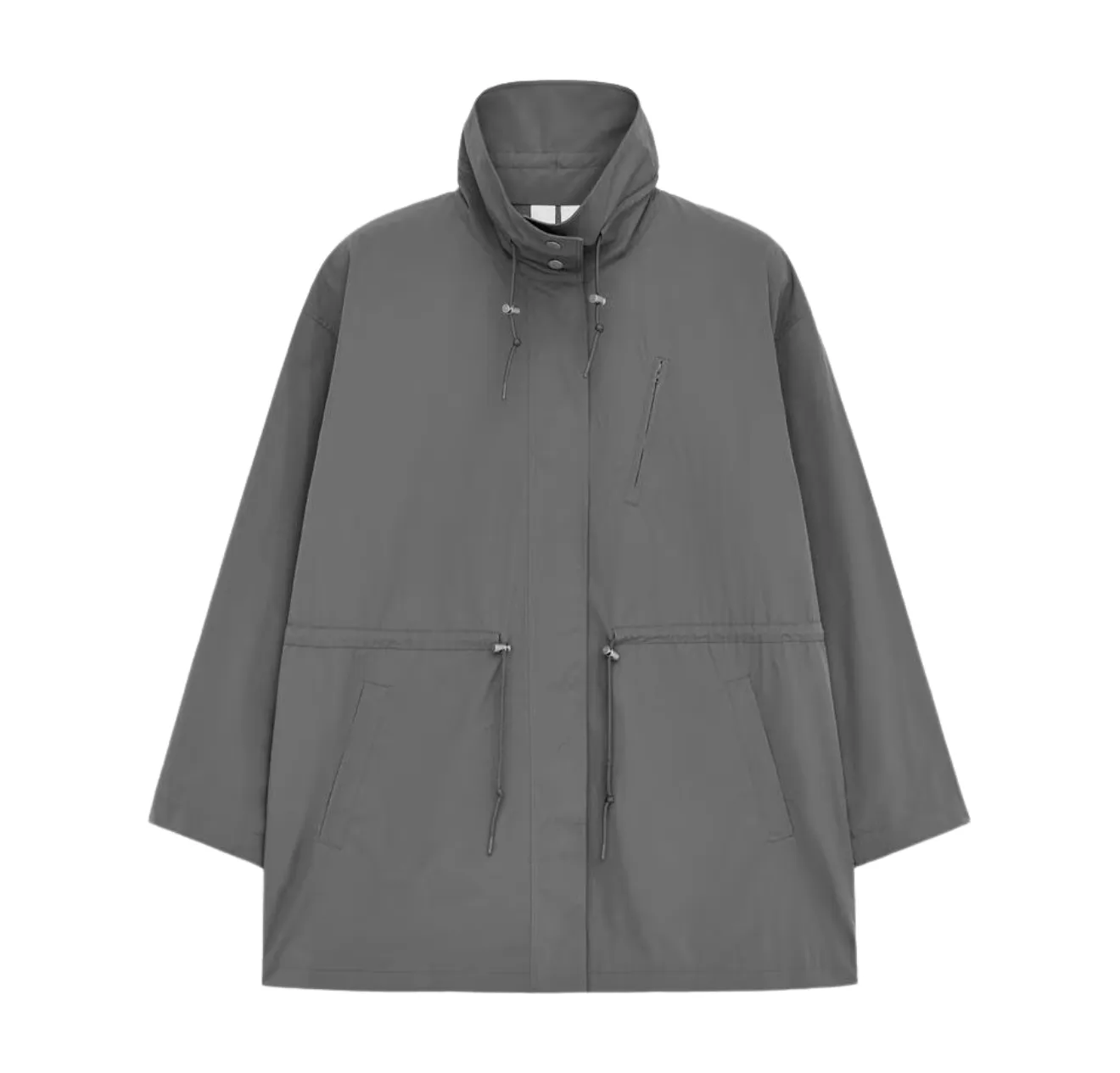When the weather can't make up its mind, these jackets do the work. Rain jackets, windbreakers, and relaxed parkas arrive in clean, streamlined silhouettes. Think of drawstrings or stand collars for the adjustable direction, and neutral tones such as grey or khaki leading the palette. Practical and fashionable by design.