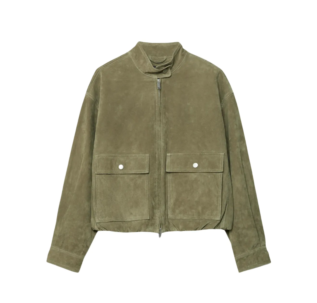 Funnel-neck jackets are everywhere this season. The style appears across a wide mix of materials, from leather and suede to cotton canvas and technical fabrics. Combining this distinctive shape with a distinctive material creates a unique jacket that elevates your entire outfit.